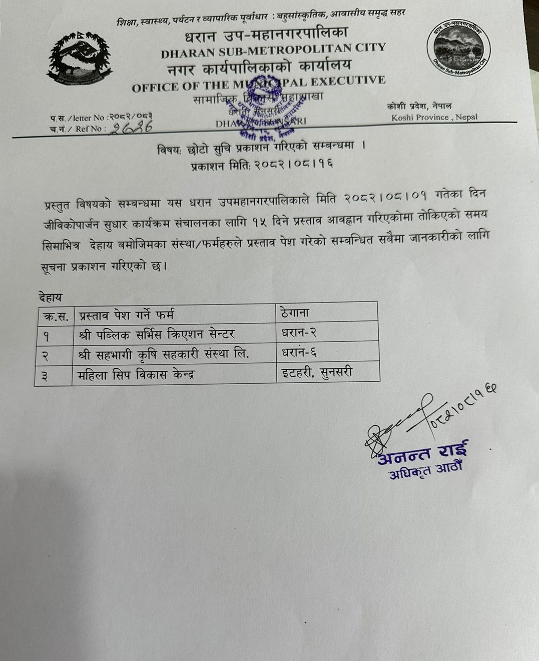 टर्मिनल भवन सहितको स्मार्ट बसपार्क ठेक्कामा दिने सम्बन्धमा (दोस्रो पटक प्रकाशित सूचना)