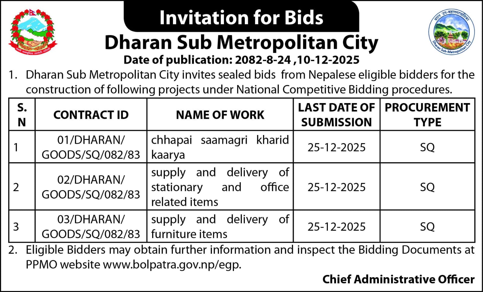 बोलपत्र स्वीकृत गर्ने आशयको सूचना