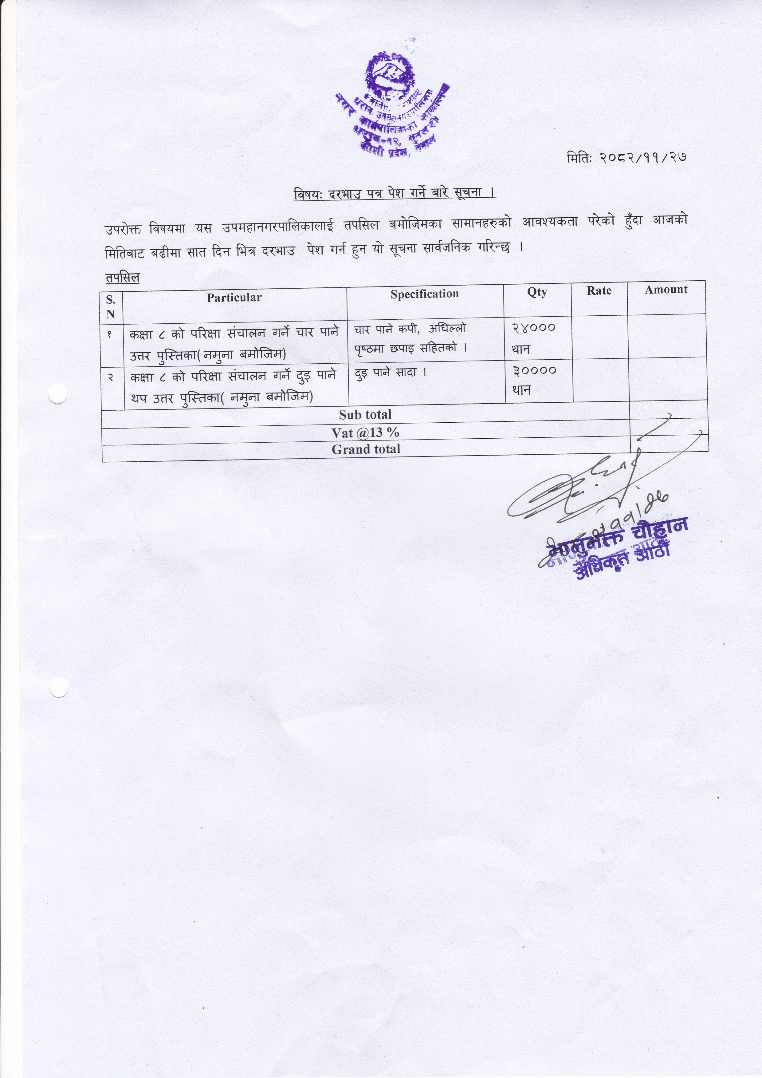 दरभाउ पत्र पेश गर्ने बारे सूचना।