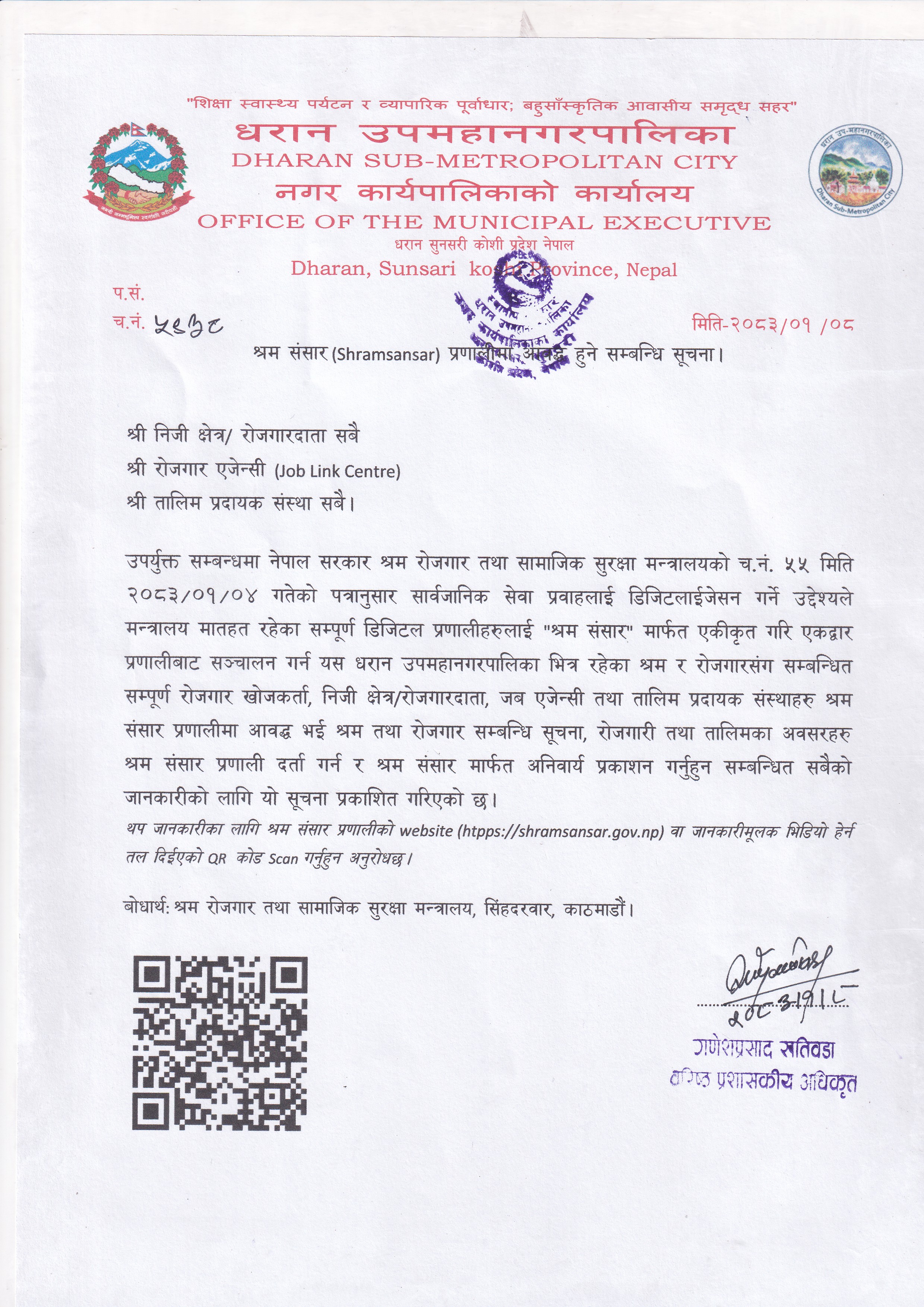 श्रम संसार प्रणालीमा आवद्ध हुने सम्बन्धि सूचना