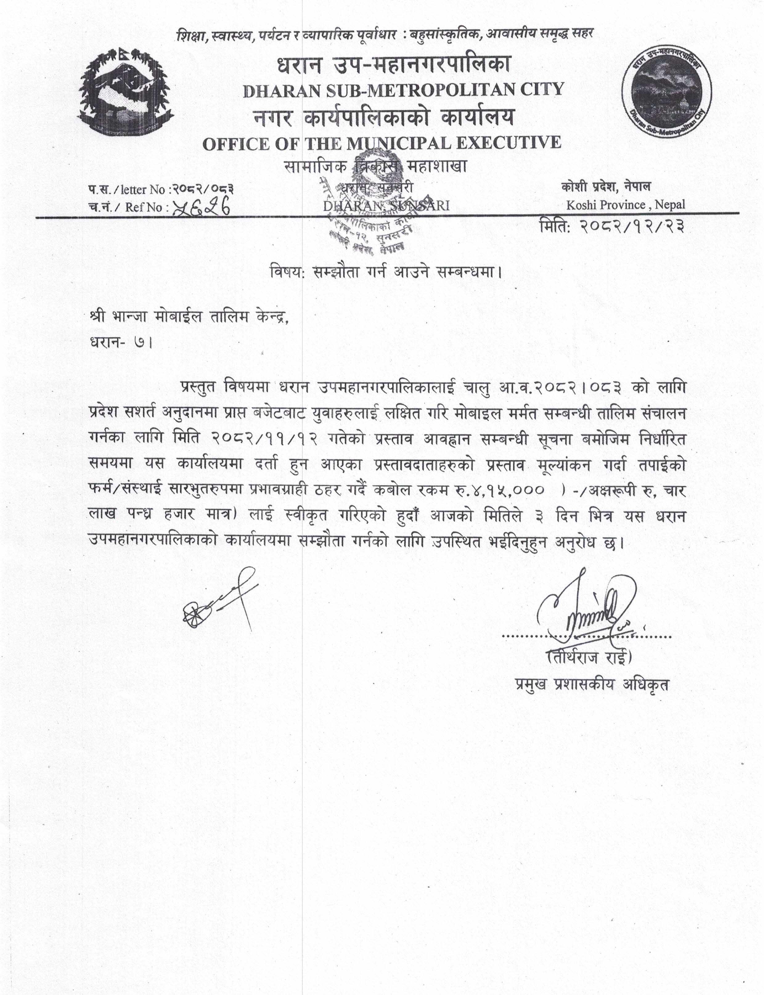 धरान उपमहानगरपालिका, नगर कार्यपालिकाको कार्यालय